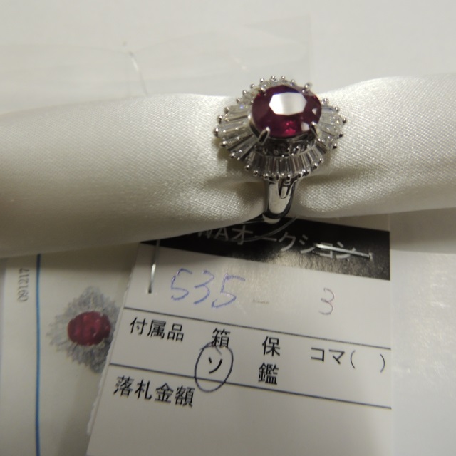 リング ルビー ダイヤ Pt900 7.60g GRJソ 石目:R2.173 D1.18
