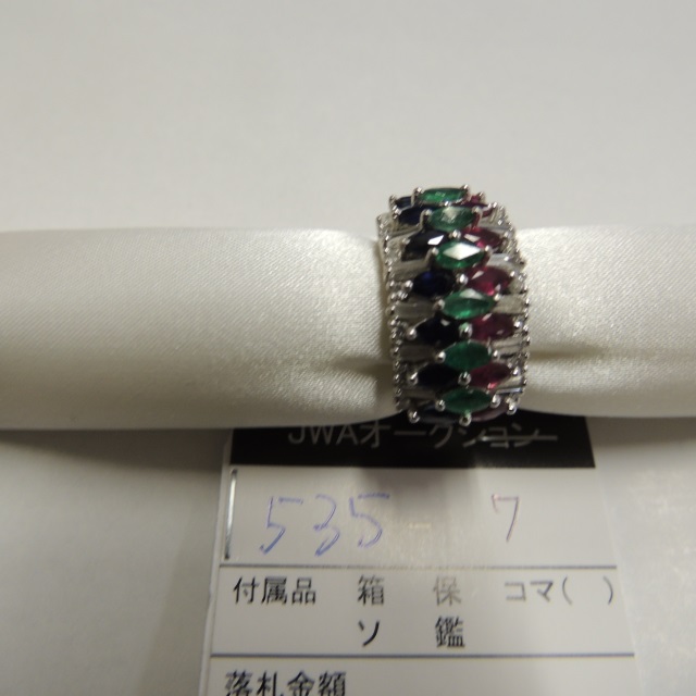 リング エメラルド ルビー サファイア ダイヤ Pt900 15.20g 石目:S1.14 R0.98 E0.73 D0.67