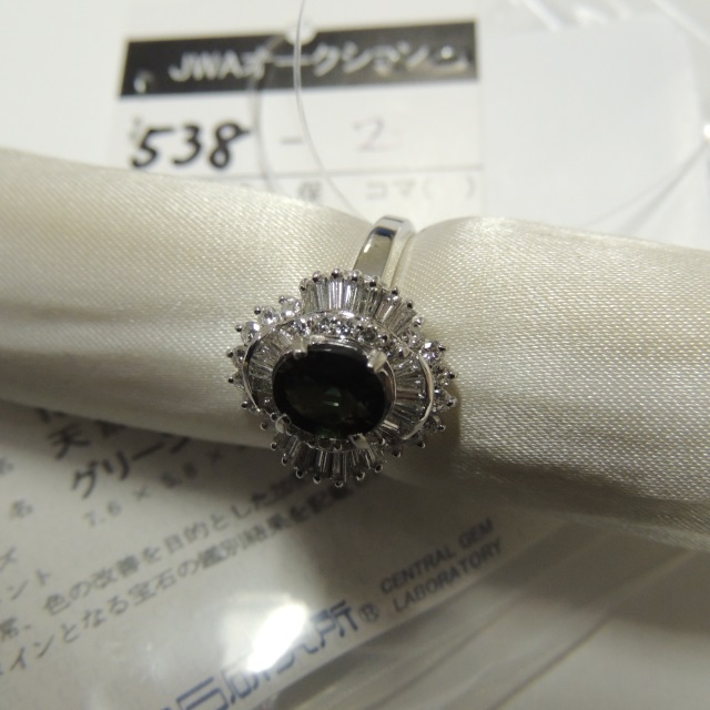 リング グリーンサファイア ダイヤ Pt900 9.10g 中ソ 石目:S1.35 D0.95