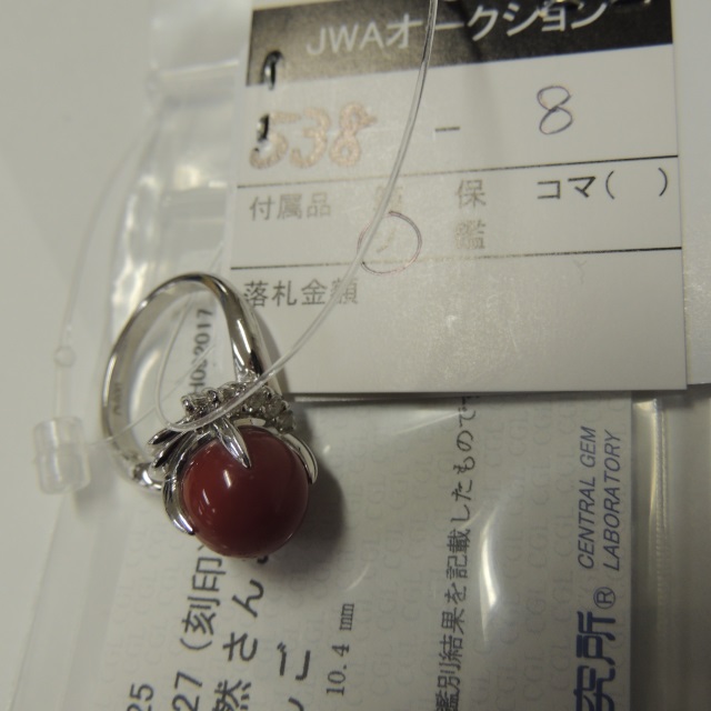リング サンゴ10.4mm(充填) ダイヤ Pt900 9.70g 中ソ 石目:D0.27