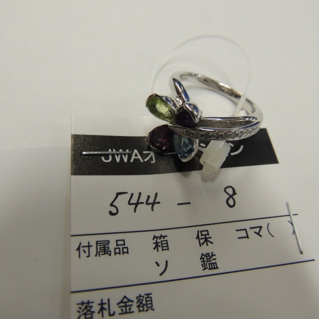 リング ロードライトガーネット ペリドット ブルートパーズ アメジスト ダイヤ K18WG 5.20g 石目:D0.08