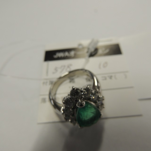 リング エメラルド ダイヤ pt900 11.70g 石目:E3.32 D1.78
