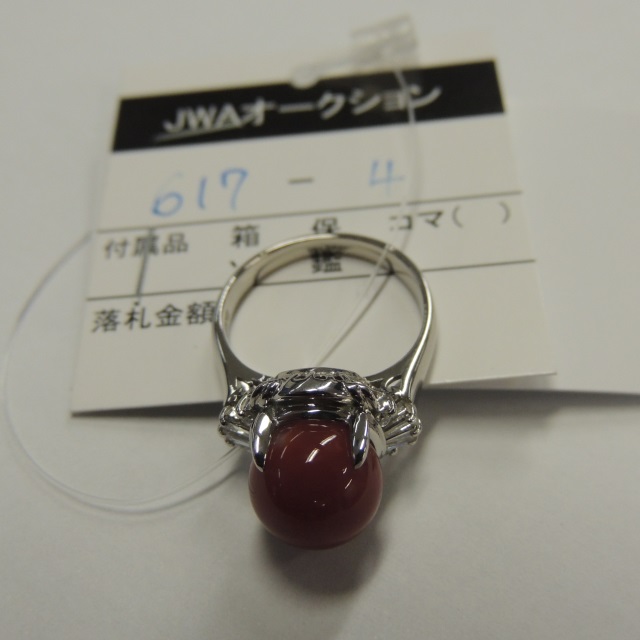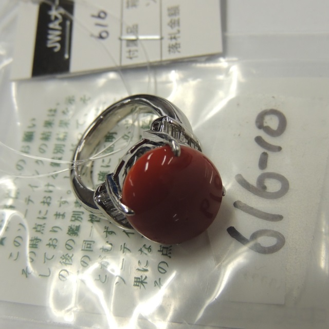 リング サンゴ ダイヤ Pt900 18.40g 中ソ 石目:CO12.85/D0.82