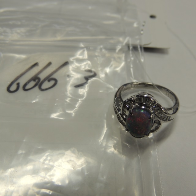 リング ブラックオパール ダイヤ Pt900 8.00g ソ 石目:4.16/0.41
