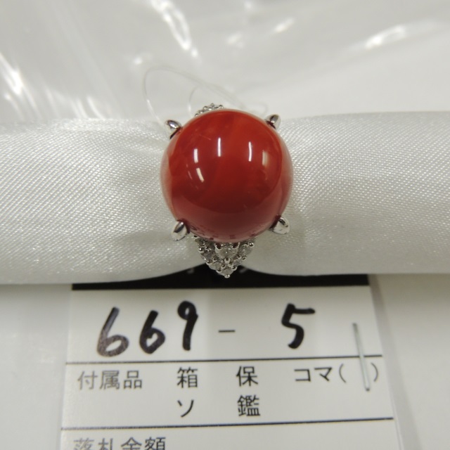 リング 珊瑚 13.9mm Pt900 12.60g 石目:FD0.38