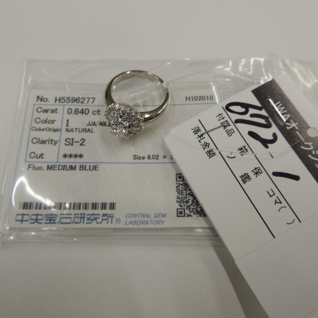 リング ダイヤ I-SI2 Pt900 9.00g 中ソ 石目:0.64/0.56
