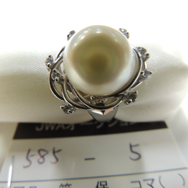 リング パール12mm ダイヤ Pt900 12.90g 石目:D0.21ct