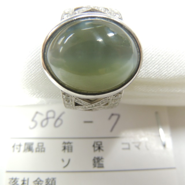 リング 緑石 ダイヤ Pt900 7.80g 石目:6.00 D0.10