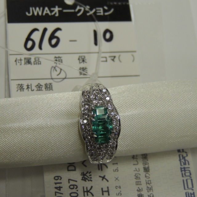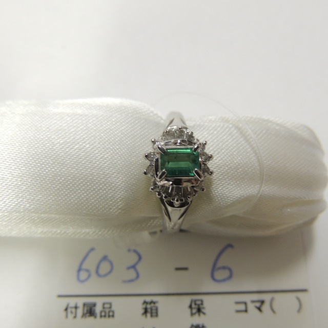 リング エメラルド ダイヤ Pt900 9.30g 中ソ 石目:E0.97 D0.60