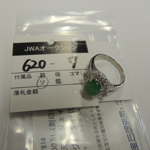 リング ヒスイ ダイヤ Pt900 9.10g 中ソ 石目:D0.51