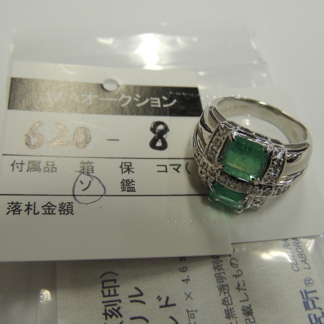 リング エメラルド ダイヤ Pt900 13.30g 中ソ 石目:E2.00 D0.25