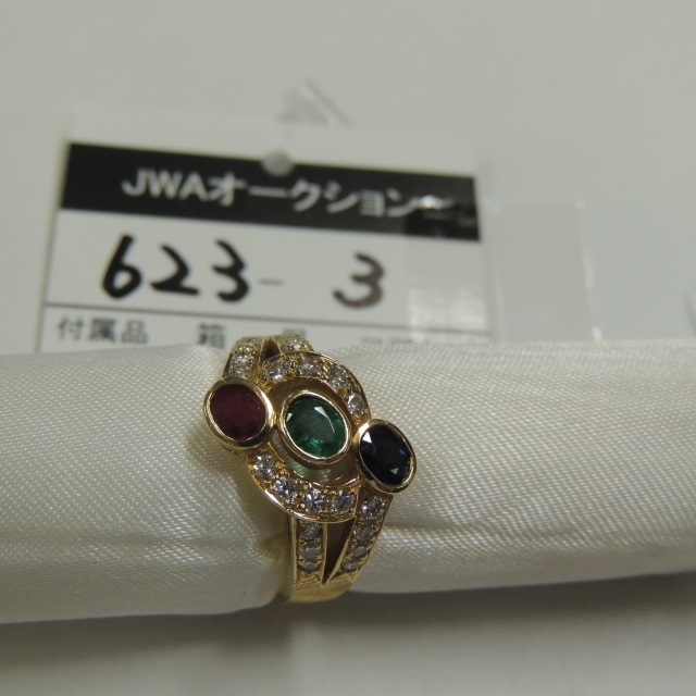 リング ルビー エメラルド サファイア ダイヤ K18 4.80g 石目:R0.28 E0.25 S0.29 D0.4