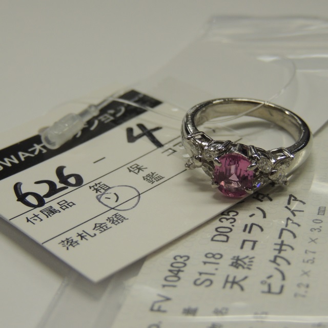 リング ピンクサファイア ダイヤ Pt900 7.60g 中ソ 石目:S1.18 D0.35