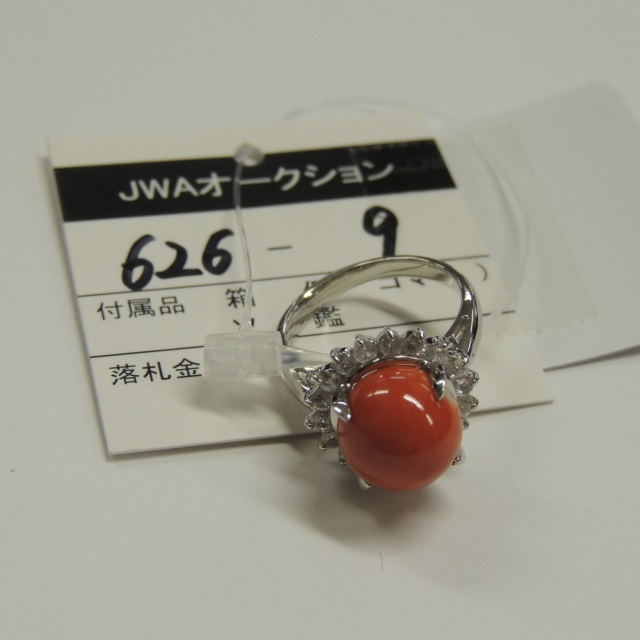 リング サンゴ 10.2mm ダイヤ Pt900 7.50g 石目:D0.80