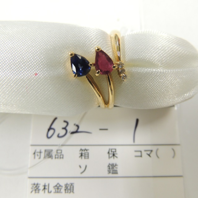 リング サファイア ルビー ダイヤ K18 2.90g 石目:S0.44 R0.29 D0.02