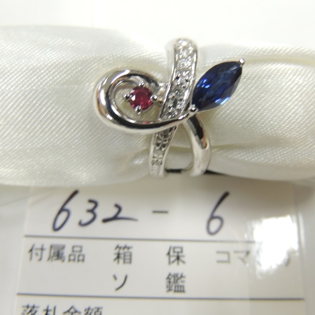 リング サファイア ルビー ダイヤ Pt900 6.80g 石目:S0.641 D0.13