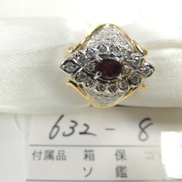 リング ルビー ダイヤ K18/Pt900 8.00g 石目:R0.48 D0.51