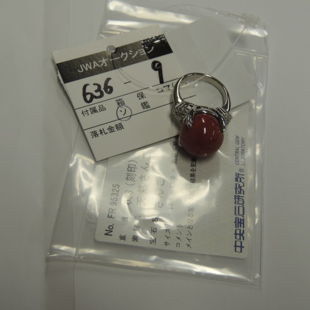 リング サンゴ ダイヤ Pt900 14.80g 中鑑 石目:D0.68