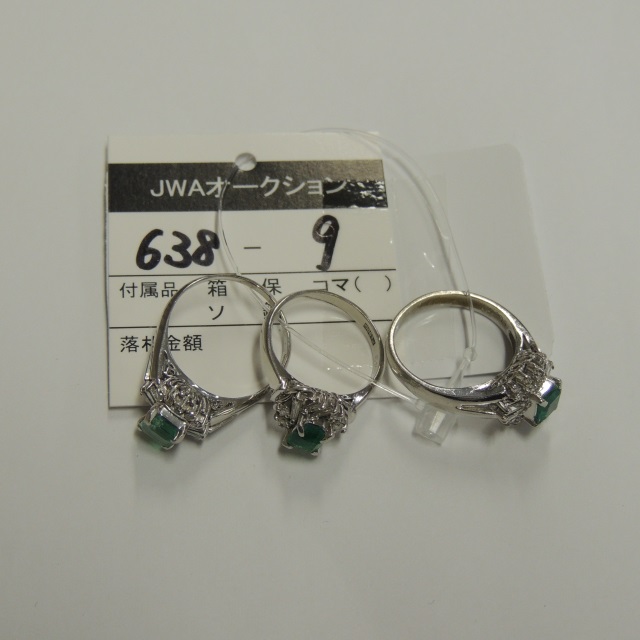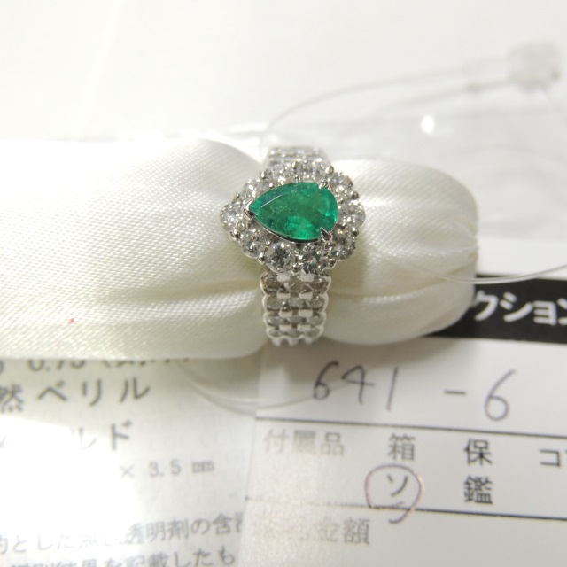 リング エメラルド ダイヤ 3点 Pt900 13.80g 石目:E1.64 D0.71