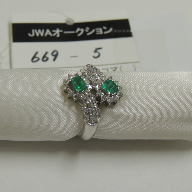 リング エメラルド ダイヤ Pt900 5.60g 石目:E0.38 D0.52
