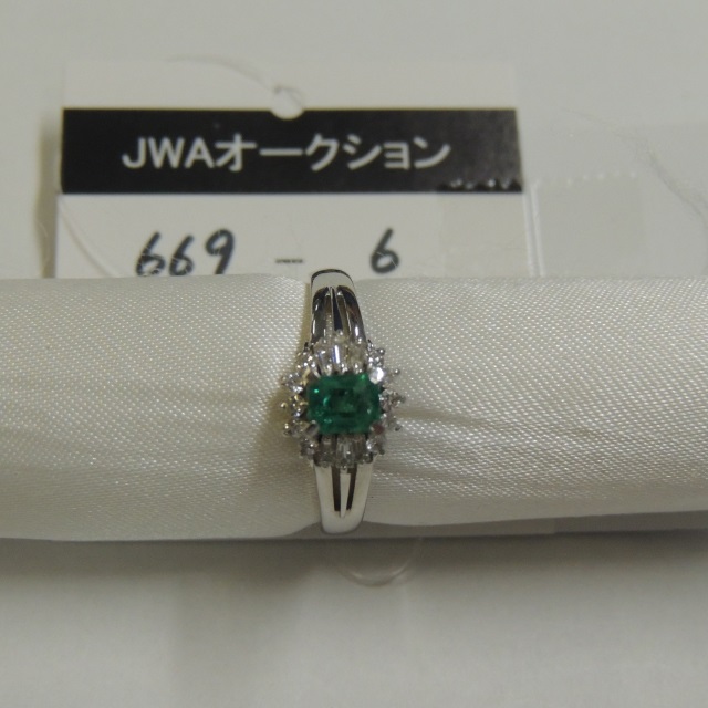 リング エメラルド ダイヤ Pt900 4.90g 石目:E0.46 D0.12 D0.12