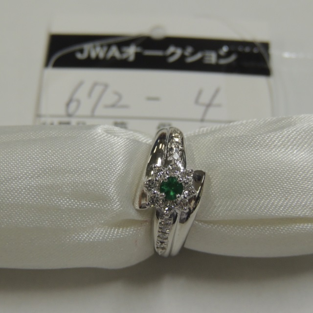リング エメラルド ダイヤ Pt900 5.70g 石目:E0.10 D0.22