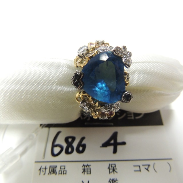 リング ブルートパーズ サファイア ダイヤ K18 12.00g 石目:BT4.2 S1.42 D0.27