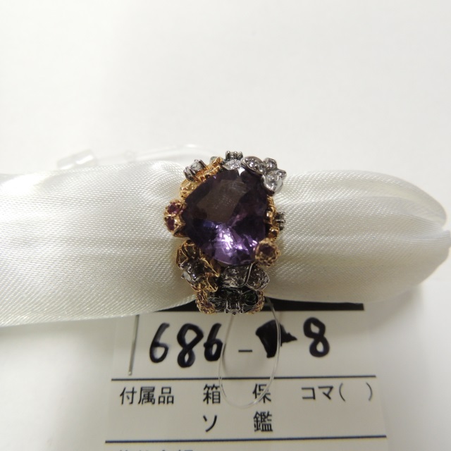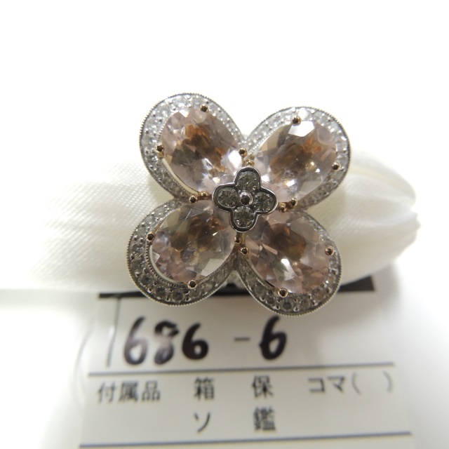 リング クンツァイト ダイヤ Pt900 10.30g 鑑 石目:9.574 D0.18