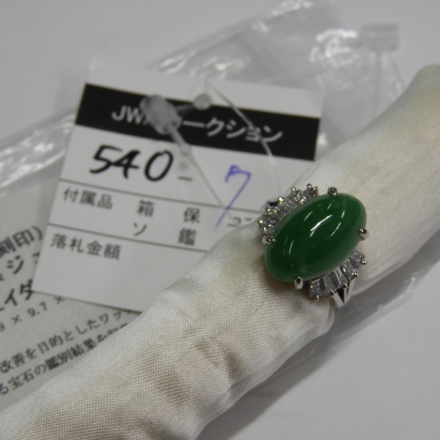 リング ヒスイ ダイヤ Pt900 9.80g 石目:JD3.71 D2.21