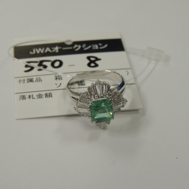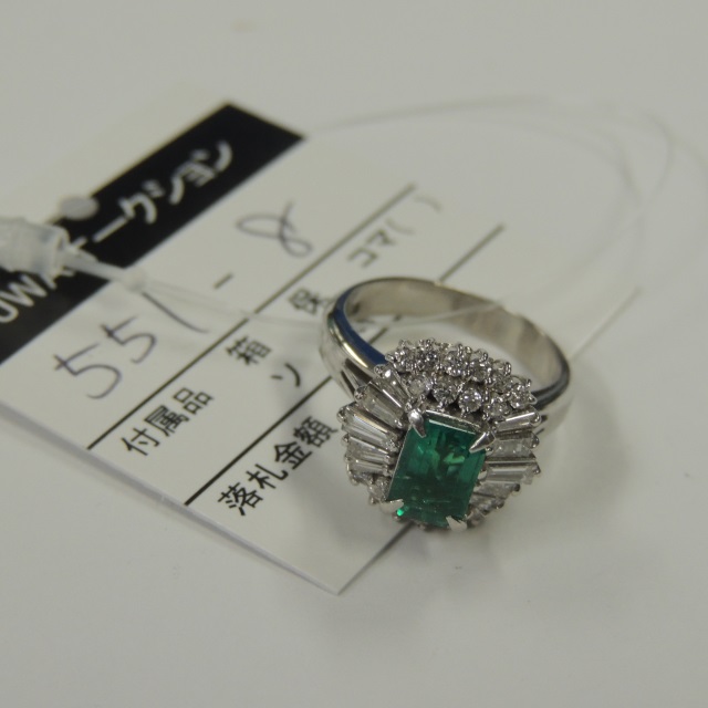 リング エメラルド ダイヤ Pt900 7.80g 石目:E0.89 D0.84