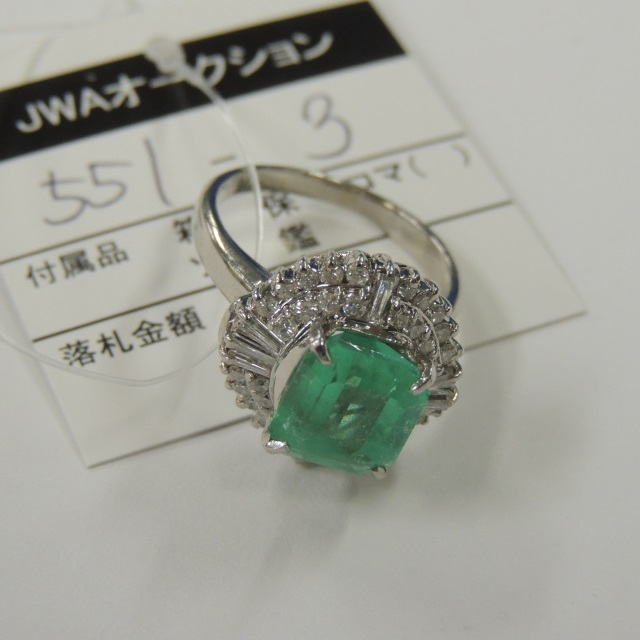 リング エメラルド ダイヤ Pt900 12.10g 石目:E3.538 D0.887