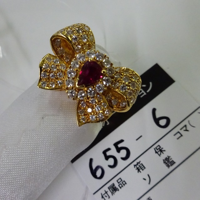 リング ルビー K18 6.70g 石目:R0.63 0.58 D0.50