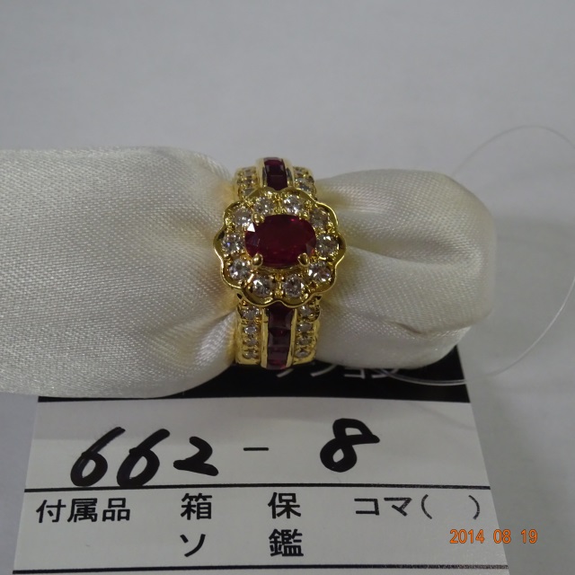 リング ルビー K18YG 11.10g 中ソ 石目:R0.50 D1.35