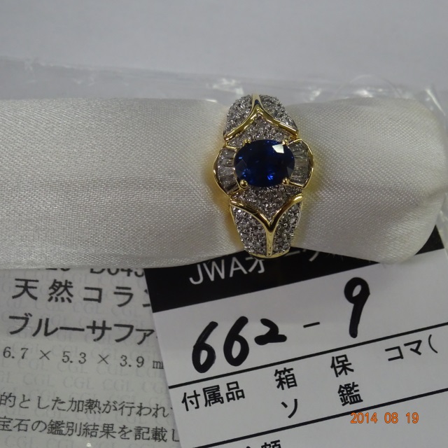 リング サファイア K18YG 10.70g 石目:S2.07/D0.71/D0.40