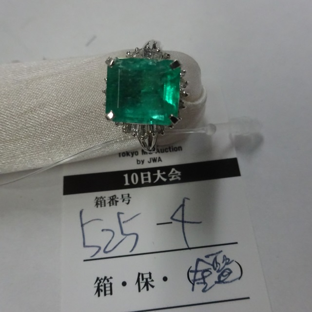 リング エメラルド/ダイヤ Pt900 5.90g 保 石目:3.19ct/TD0.35ct