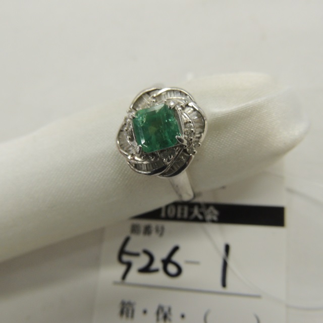 リング エメラルド ダイヤ Pt900 7.28g 石目:E1.09 D0.40
