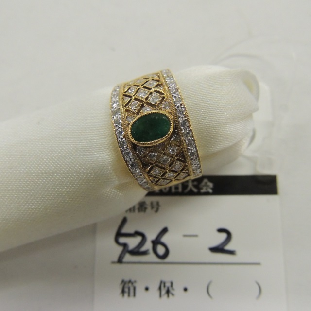 リング エメラルド ダイヤ K18YG 7.40g 石目:E0.42 D0.37