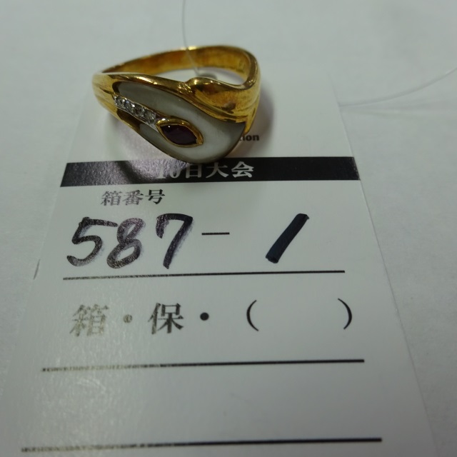 リング ルビー/シェル/ダイヤ シェル欠け K18 6.10g 石目:R0.16/D0.15