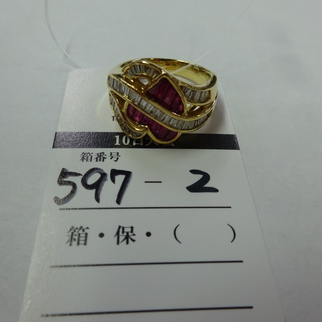 リング ルビー/ダイヤ 見た目 K18 4.00g