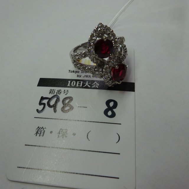 リング ルビー/ダイヤ Pt900 5.60g 鑑 石目:0.99/D0.34
