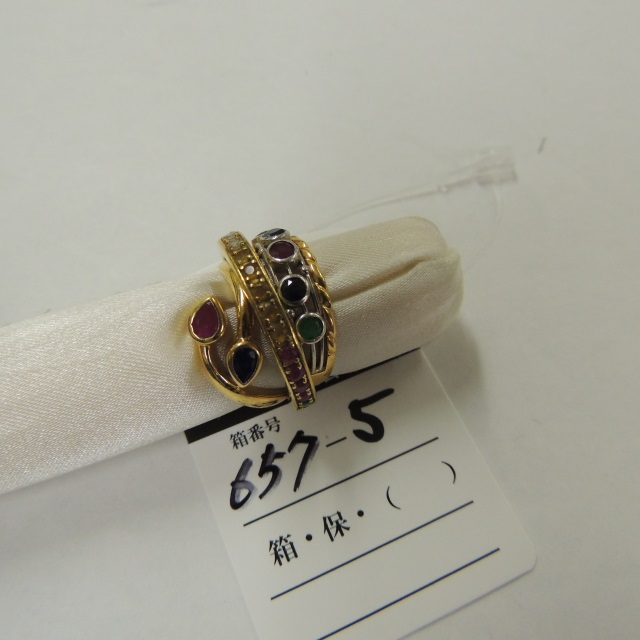 リング ルビー サファイヤ 3点 石目刻印なし 750 K18 9.60g