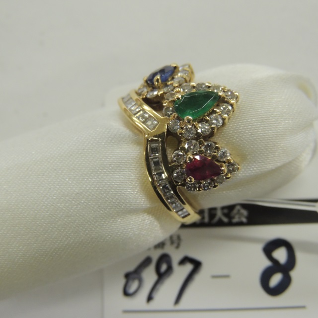 リング 色石 色石/ダイヤ 2点 石目見た目 K18 14.70g 石目:D0.15