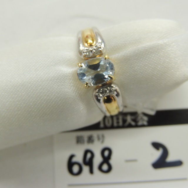 リング ブルートパーズ/ダイヤ 石目見た目 Pt900/K18 5.00g 石目:0.07