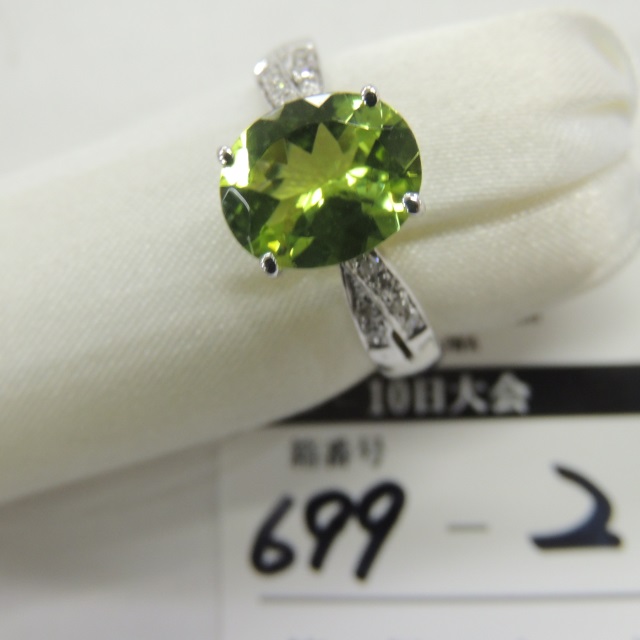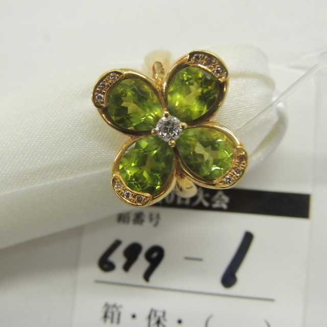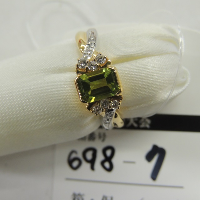 リング ペリドット/ダイヤ K18/Pt900 6.80g 石目:PD1.11/D0.17