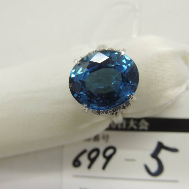 リング ブルートパーズ/ダイヤ Pt900 9.50g 石目:10.00/D0.11