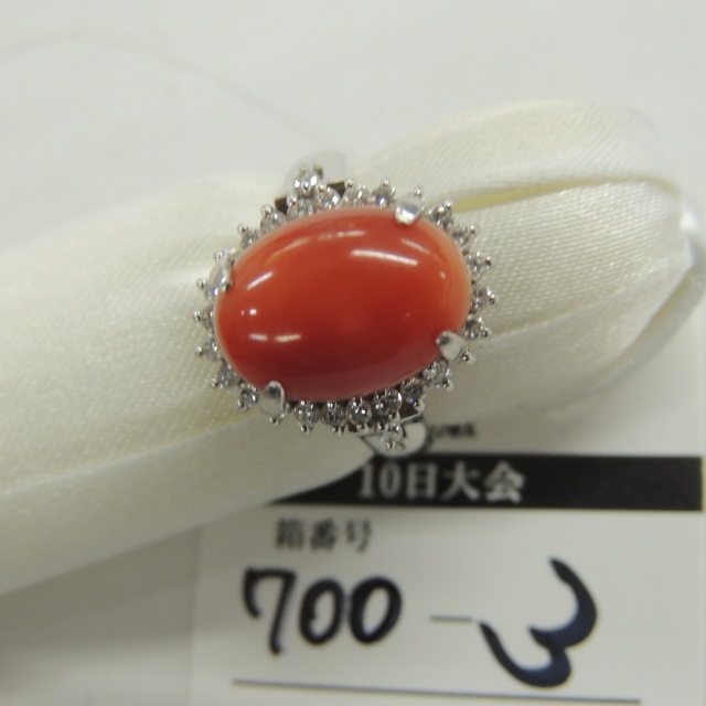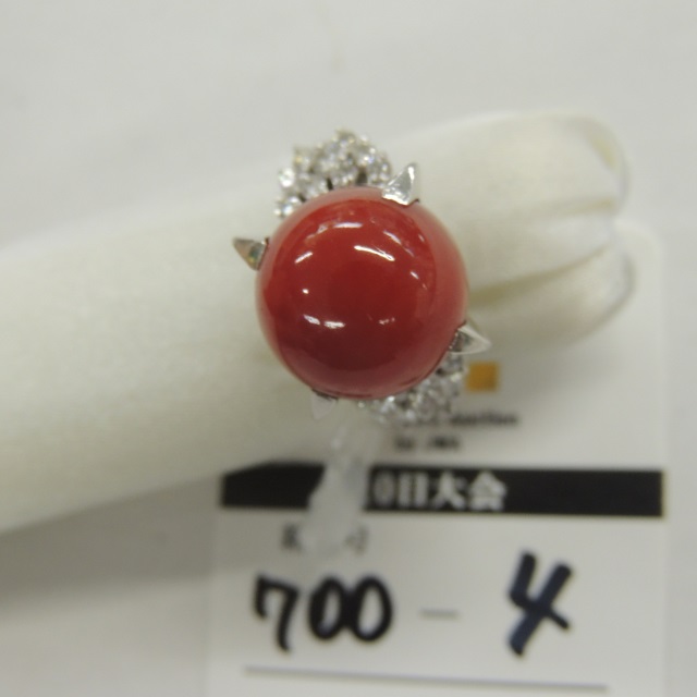 リング サンゴ/ダイヤ 石目見た目 Pt900 10.60g