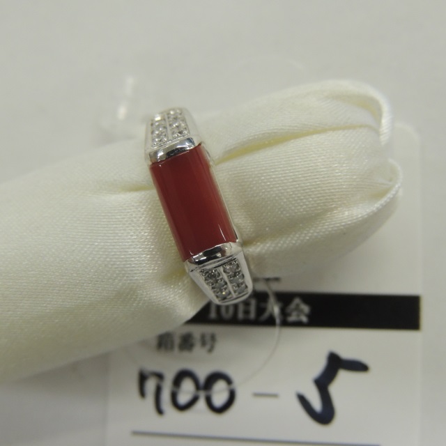 リング サンゴ/ダイヤ 石目見た目 Pt1000 8.40g 石目:0.12