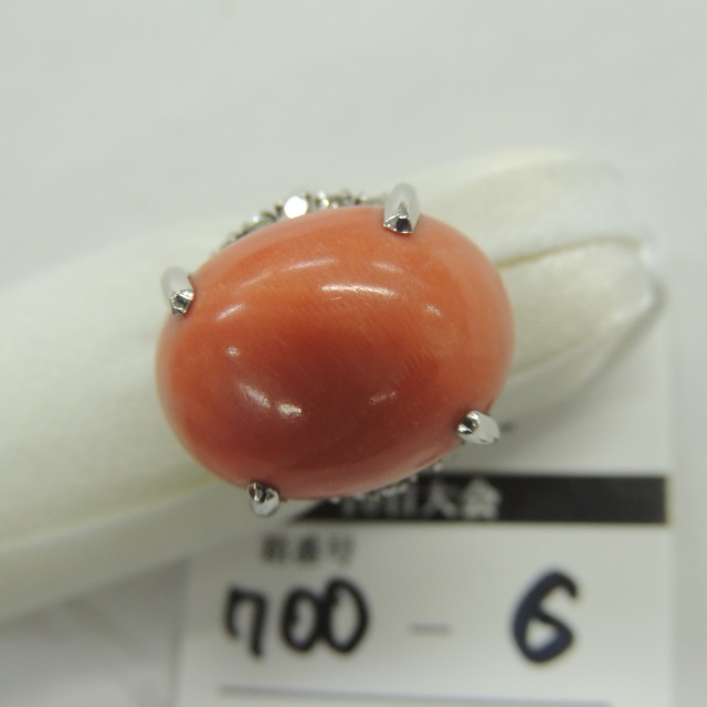 リング サンゴ/ダイヤ 見た目 Pm900 16.80g 石目:0.27