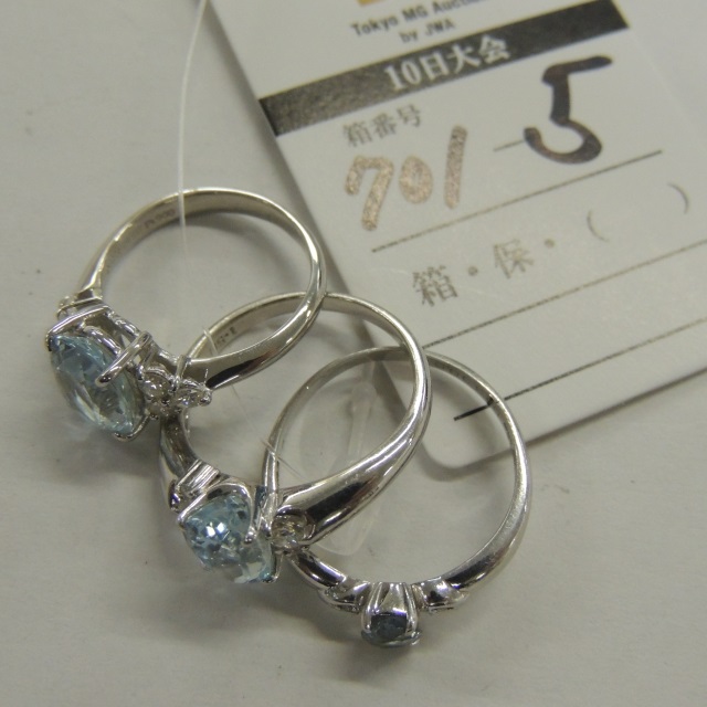 リング アクアマリン/ダイヤ 3点 Pt900 12.80g 石目:2.23/0.31 1.56/D0.17 0.43/D0.02