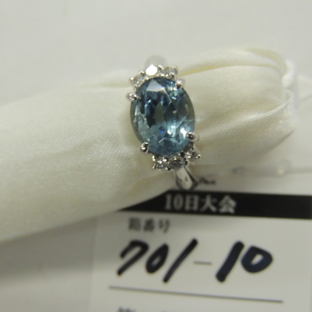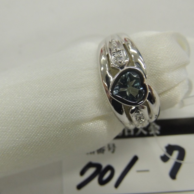 リング アクアマリン/ダイヤ Pt900 8.20g 鑑 石目:3.05/D0.20